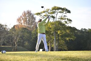 ポスティゴ選手はスタートホールで林越えを狙ったところ叶わず、手前のバンカーにイン。安全な場所に出しましたが、このホールはダボ。それでもバーディもいくつか取り1アンダーでラウンドしました。
