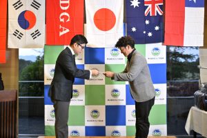 韓国からは8人の選手が参加しましたが、韓国障がい者ゴルフ協会のSou会長も前夜祭に参加し、「日本の大会を見て勉強し、韓国でも国際大会を開催したい」との挨拶がありました。