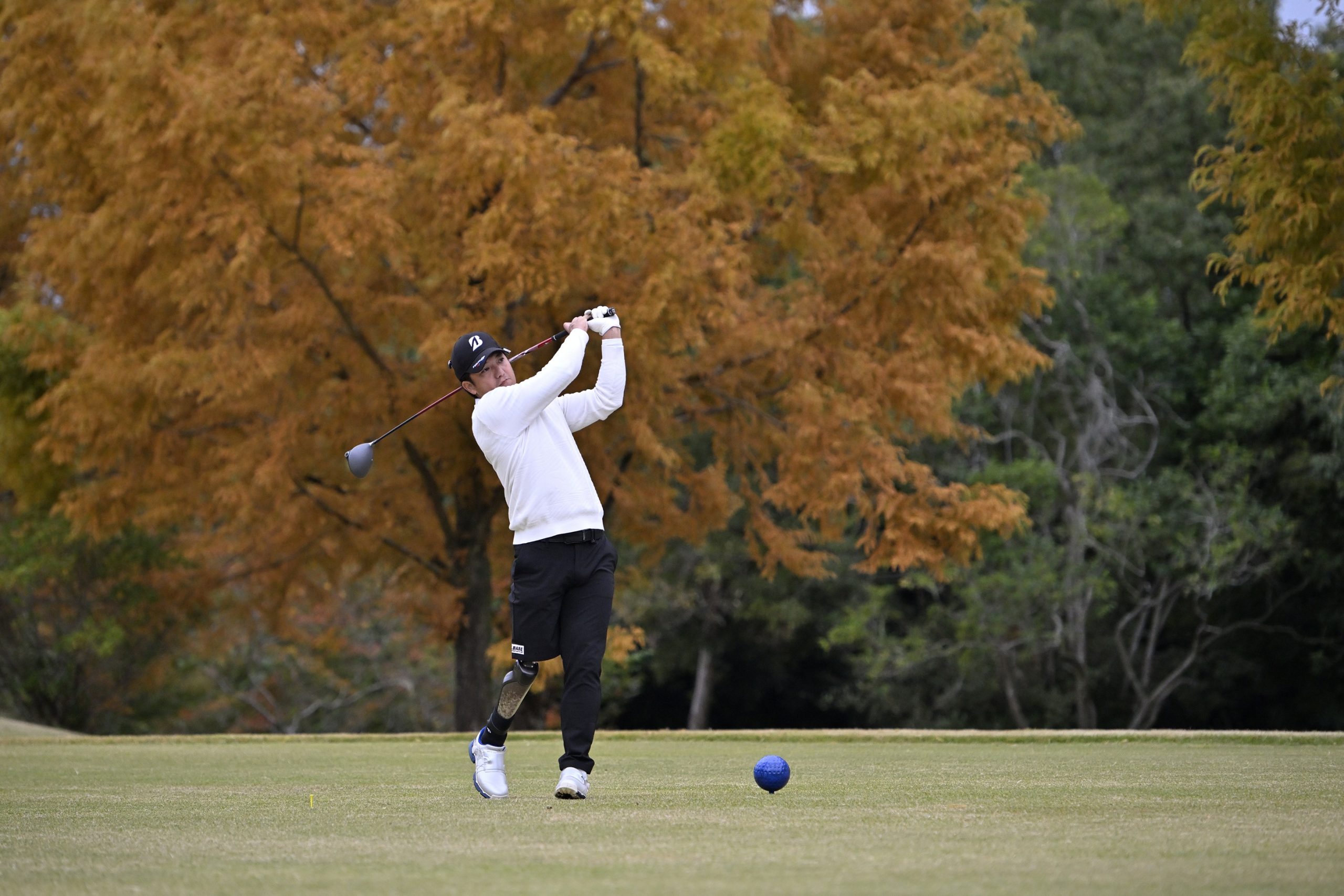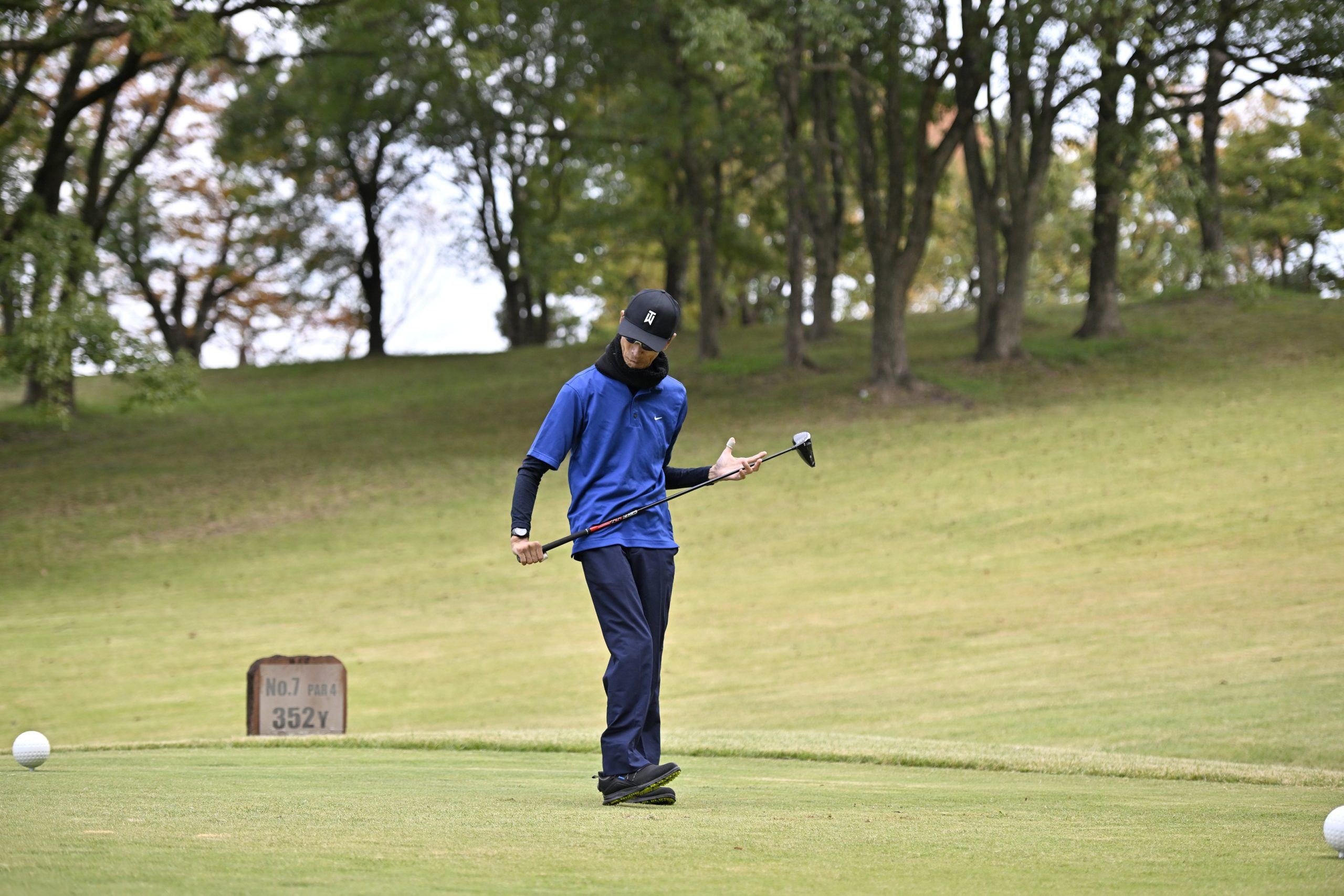 ポスティゴ選手はスタートホールで林越えを狙ったところ叶わず、手前のバンカーにイン。安全な場所に出しましたが、このホールはダボ。それでもバーディもいくつか取り1アンダーでラウンドしました。