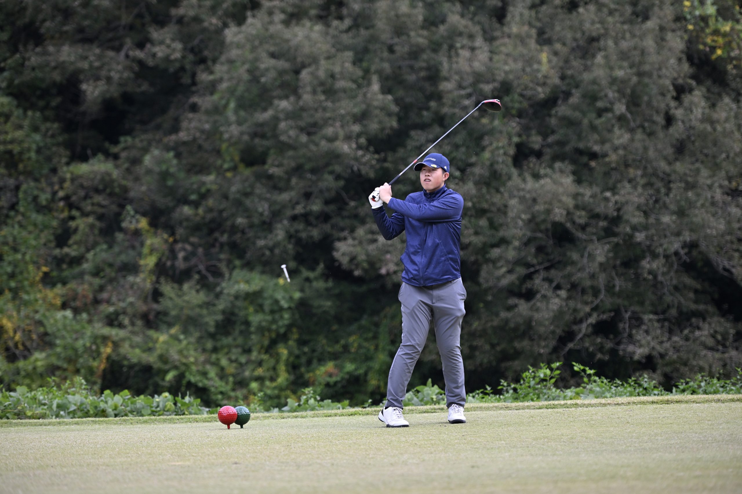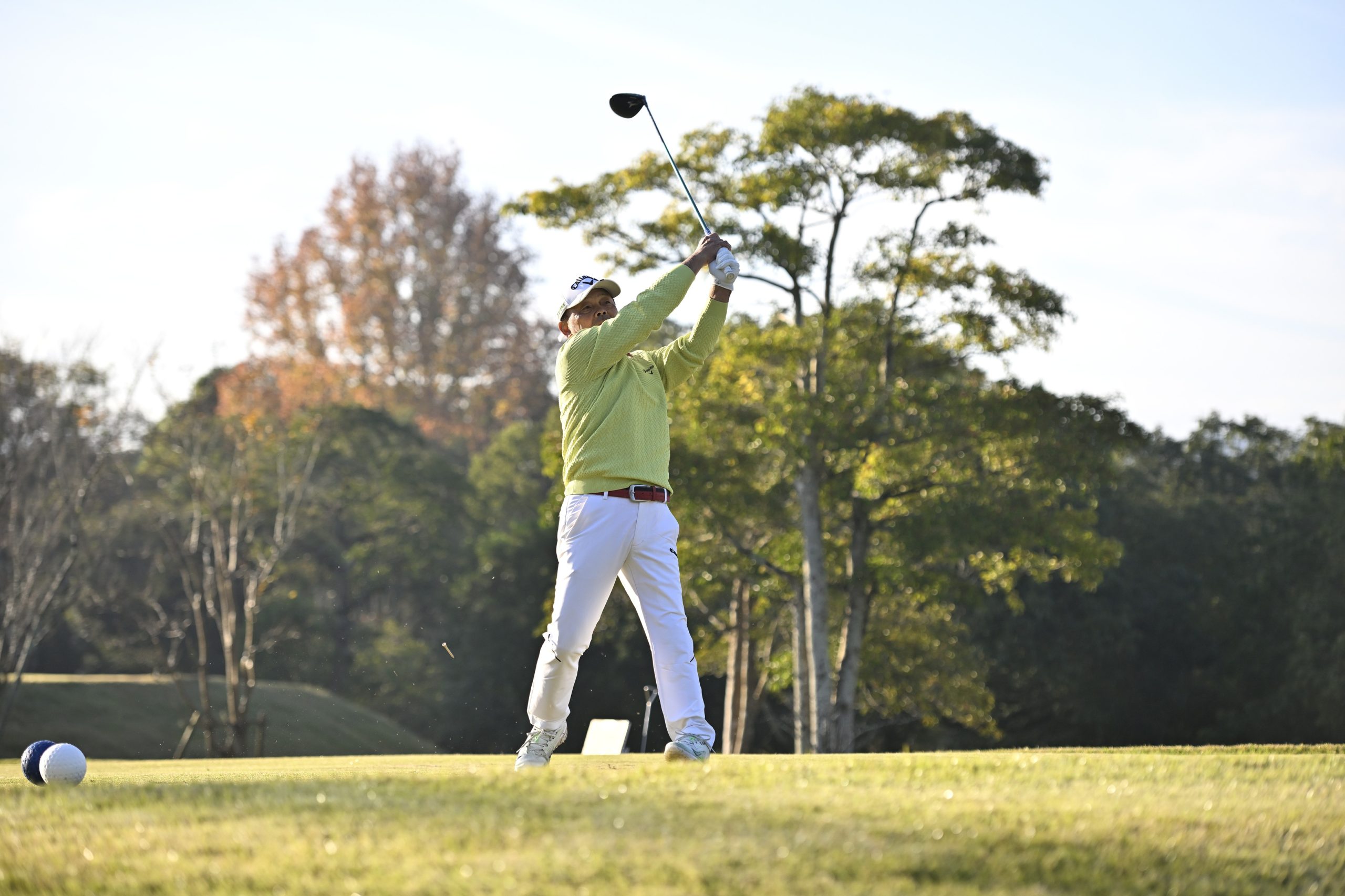 大会初日は快晴のゴルフ日和。スタート前のデモプレーでは、スペインのホアン・ポスティゴ選手、チリのエルナン・ガルシア選手、そして日本の吉田隼人選手が強打を披露し、ギャラリーを沸かせました。